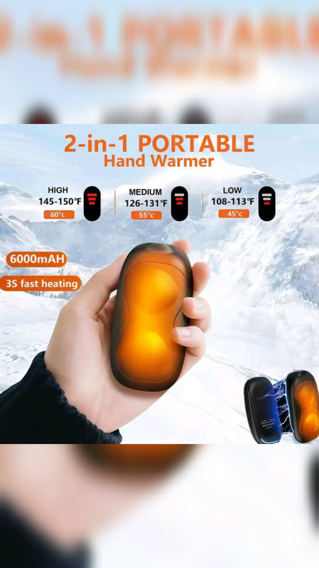 2-इन-1 पोर्टेबल हैंड वॉर्मर ठंड में हाथों को गर्म रखने के साथ-साथ 6000mAh पावर बैंक की तरह मोबाइल चार्ज करता है। यह सर्दियों का सबसे उपयोगी साथी साबित होता है।